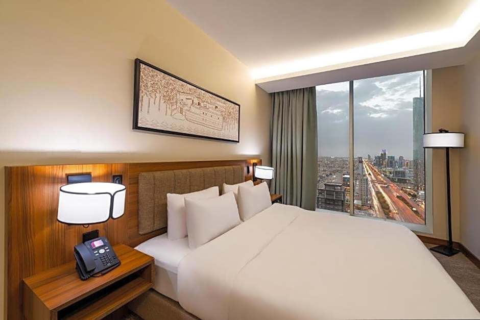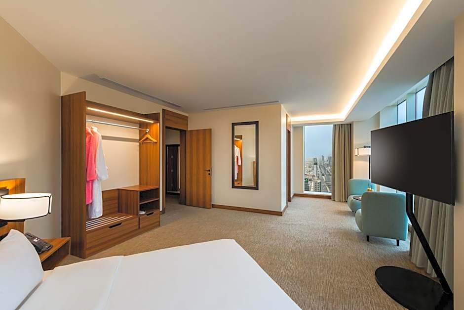 This spacious suite consists of 1 living room, 1 separate bedroom and 1 bathroom with a walk-in shower and free toiletries. The air-conditioned suite provides a flat-screen TV with satellite channels, soundproof walls, a tea and coffee maker, a seating area as well as city views. The unit offers 1 bed.