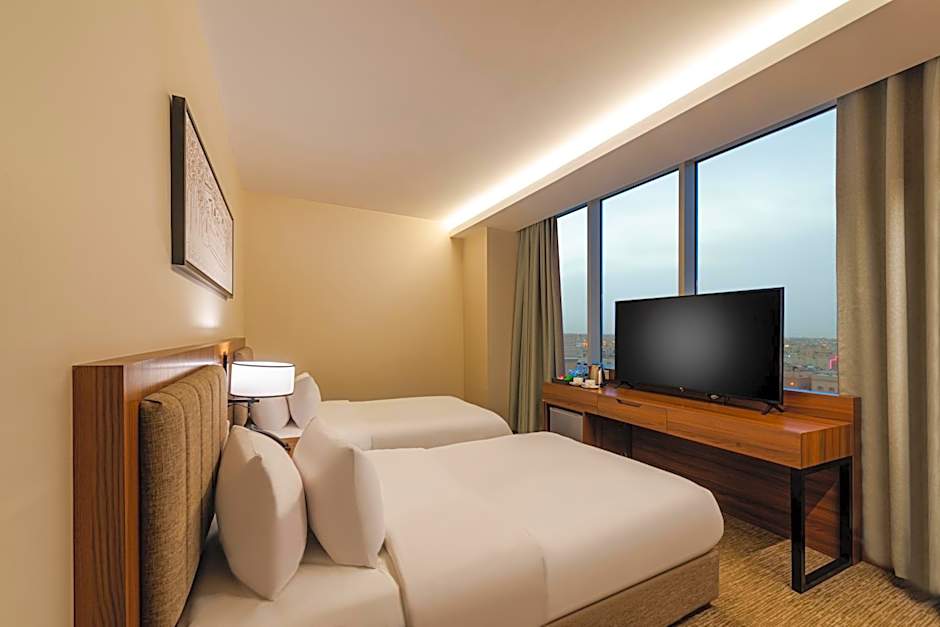 Featuring free toiletries, this twin room includes a private bathroom with a walk-in shower, a bidet and a hairdryer. The air-conditioned twin room features a flat-screen TV with satellite channels, soundproof walls, a tea and coffee maker, a wardrobe as well as city views. The unit has 2 beds.
